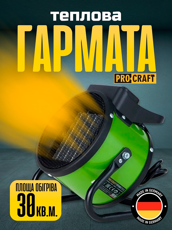 «Використовую Procraft FP30C у гаражі — працює на відмінно. Потужності достатньо, щоб прогріти холодне приміщення навіть узимку. Вібрація мінімальна, шум не заважає. За свої гроші дуже хороший варіант, якість зборки приємно здивувала.»