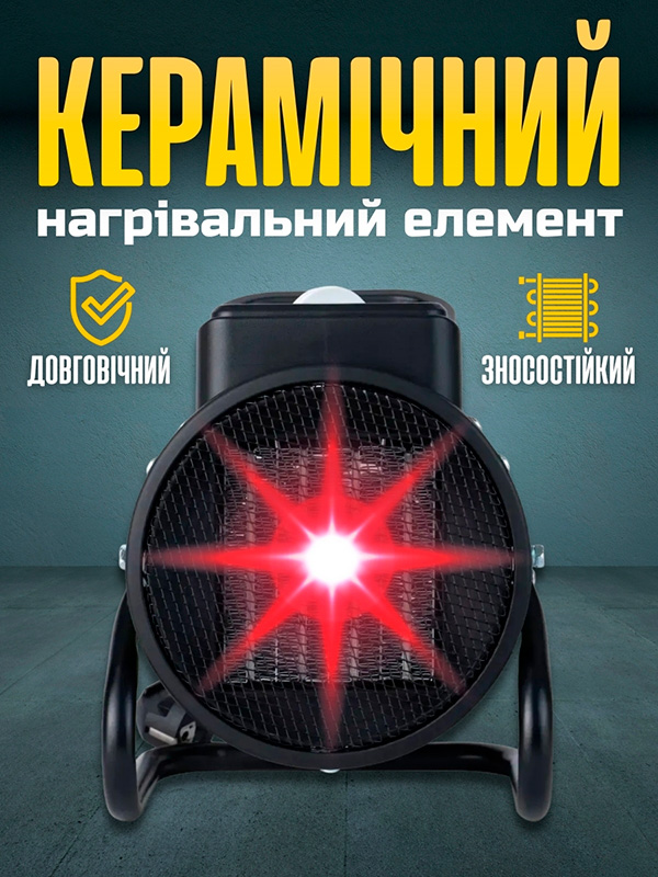 Корпус пристрою виготовлений із міцного металу, що гарантує довгий термін служби та стійкість до високих температур. Додаткова решітка на передній частині захищає внутрішні елементи та забезпечує безпечну експлуатацію. Компактні розміри дають змогу легко розмістити обігрівач у будь-якому зручному місці.